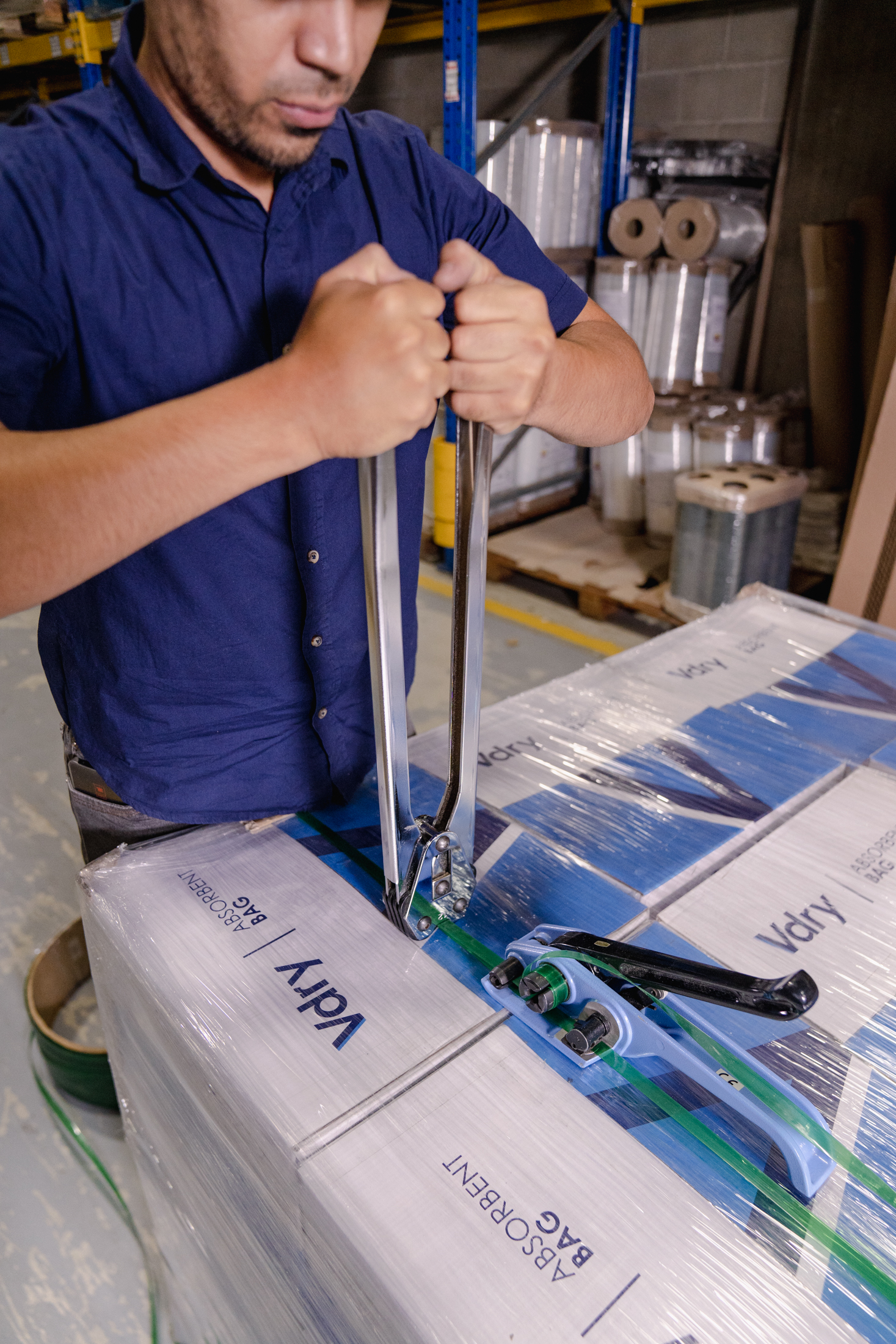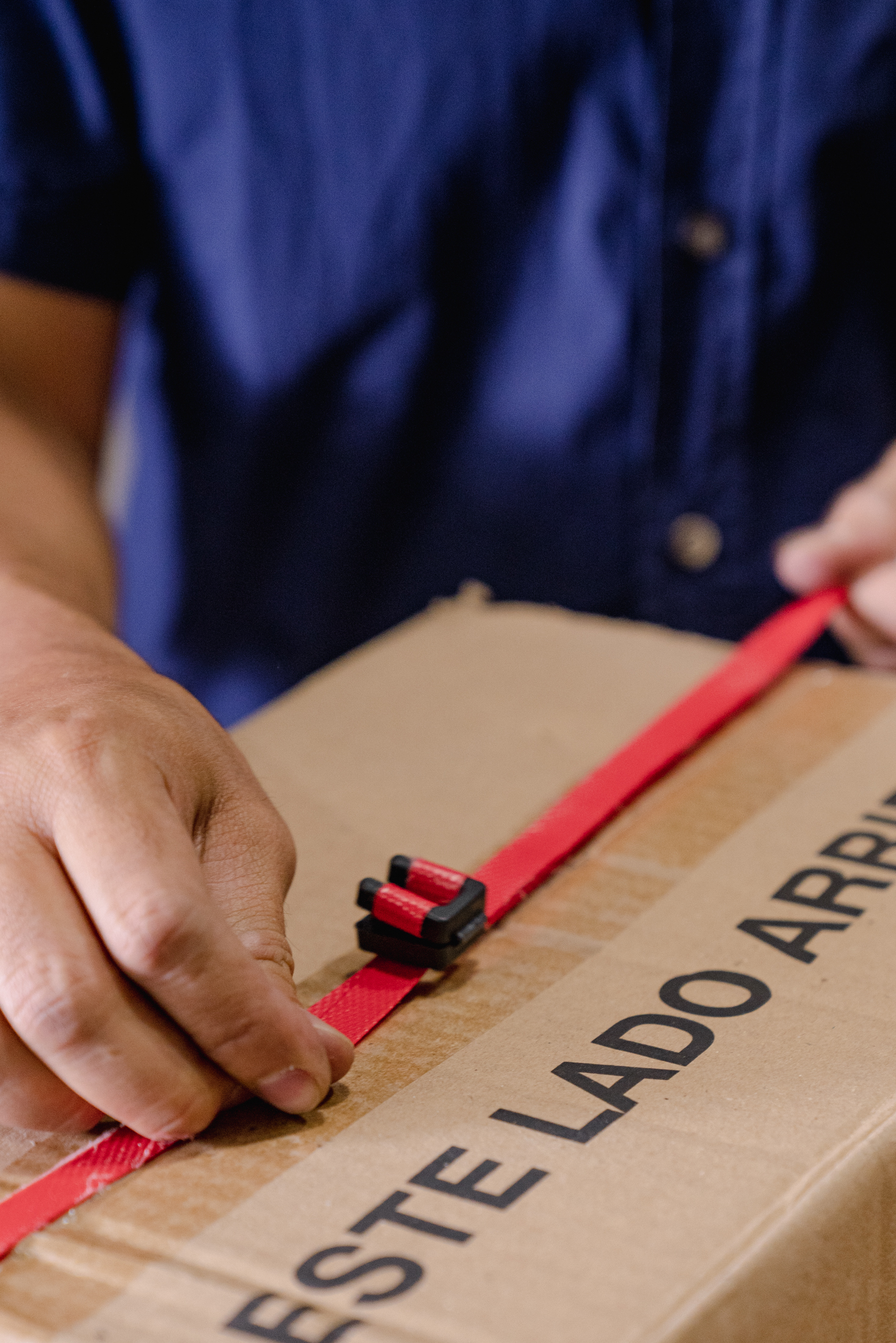 Banda o fleje fabricado en plástico (Polipropileno PP – PET) o en aleación de acero inoxidable usados en los procesos de embalaje y transporte para sujetar o asegurar objetos, paquetes o cargas en el paletizado, brindando confiabilidad en el amarre.